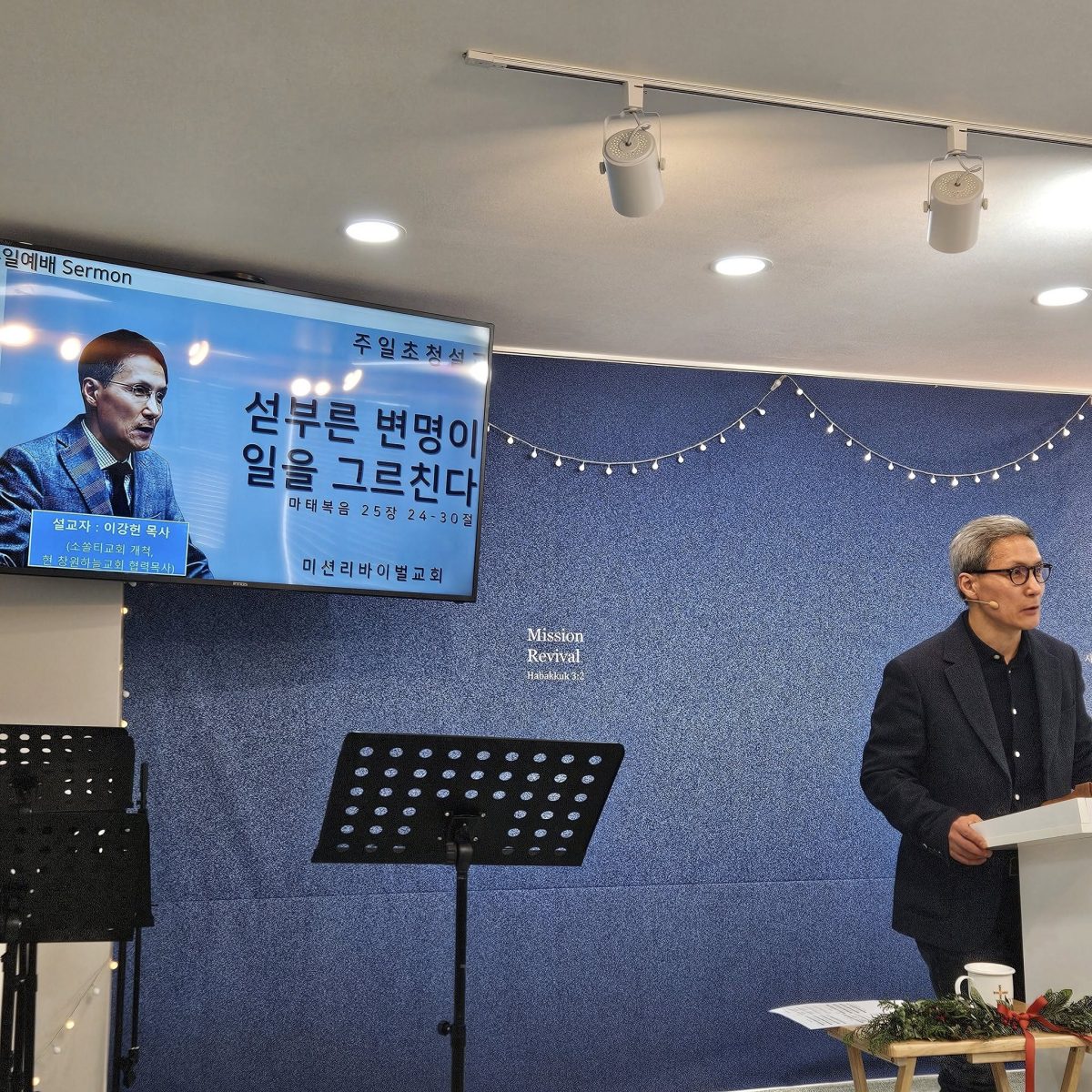 지난 주일날 서울 건대입구에 있는 미션리바이벌교회에서 초청받아 주일 설교를 드리고 왔어요.